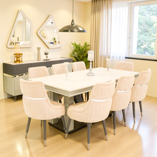 سفرةمودرن FLORA (طاولة +8 كراسي+دلسوار)